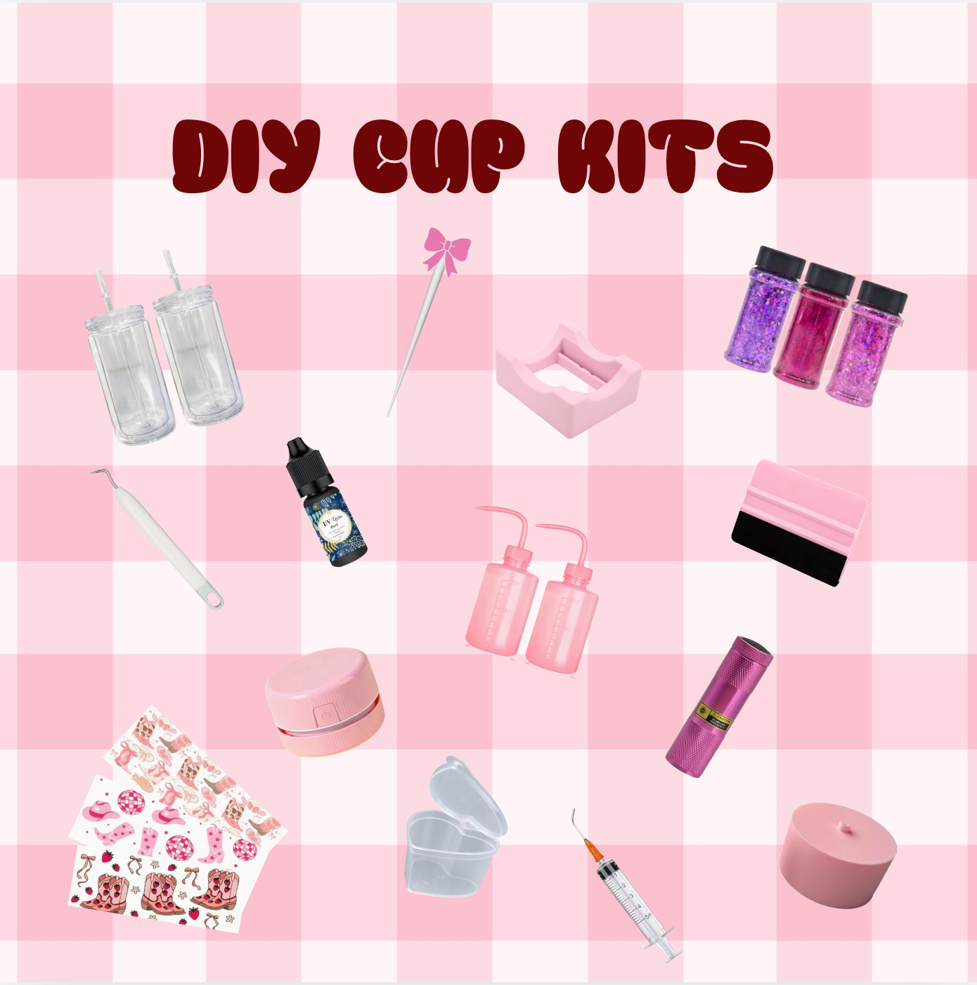 Simply choose your cup! checkout and the rest will be done on TIKTOK LIVE. We will your desired wrap and glitter colours.